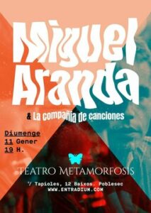 Domingo 11 de enero a las 19:00 h en el Teatro Metamorfosis de Barcelona. Puedes comprar tu entrada aquí: https://entradium.com/es/events/miguel-aranda-y-la-compania-de-canciones-barcelona
