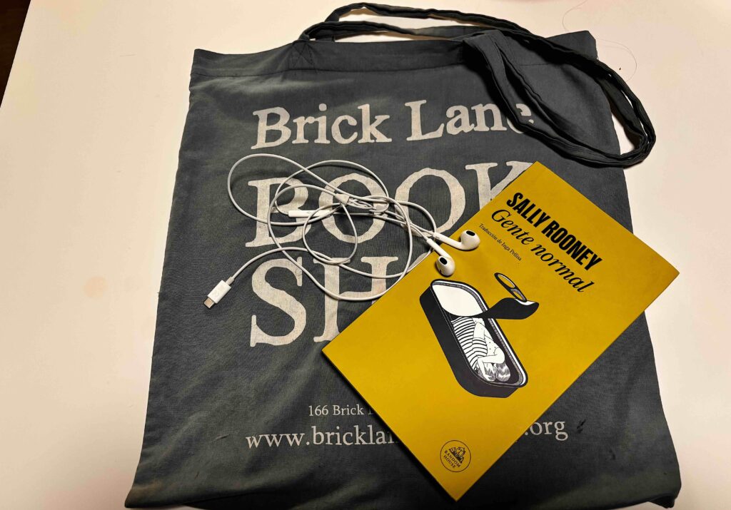 Va a todas partes con una totebag, es decir, con una bolsa de tela. Yo soy de esos, porque siempre carreteo libros, el portátil y otros cachivaches de poco peso. Mi favorita es una azul (ver en la cabecera) de una librería de la londinense Bricklane.